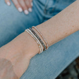 Our minimalist fresh water pearl bracelet is strung with irregular pearls dyed a beautiful deep sea shade of black. Dress it up for an evening out or keep it cool but casual with your favorite pair of jeans. Make it a set with our Minimalist Fresh Water Pearl Necklace in Black.