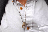 Wear your Brummels like a badge of honor. The military-inspired Big Brummel necklace has contrasting Big Brummels that wear like dog tags with a nautical twist.
