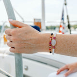 Our June Rayminder UV Awareness Bracelet drop is all about the red, white, and blue to get you ready for the 4th! Whether you plan to watch the fourth of July parade move down Main St or decide today is all about outdoor grilling, wear your June Rayminder for a patriotic touch to any outfit. Wrap this bracelet around your wrist and secure with a square knot.
