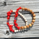 - Dyed Bamboo Coral with 8mm Cedar Wood Beads
