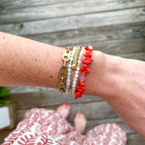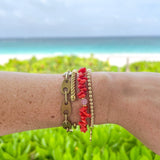 The June Rayminder UV Awareness Bracelet was inspired by a much anticipate red hot summer. The sea-inspired bracelet design has a single UV sensitive bead to increase your UV awareness as we move into the best season of the year to be outdoors. Raymember, when that UV beads change from clear to color that's your ray-minder to apply sunscreen!*