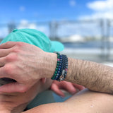 Add the men's Rayminder UV Awareness Bracelet in lapis lazuli alongside your favorite Sailormade rope brummel bracelet.