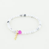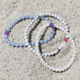 Wear our UV Awareness Rayminder Bracelet in Howlite when a beach nap is your endgame. Howlite helps to relax your mind and body and invites positive thoughts for peaceful dreaming.