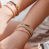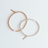 This bracelet is the perfect sun safety accessory to wear whether you are window shopping down Bearskin Neck in Rockport or dressing up for an oceanside wedding in Newport. Each rose gold-fill beaded bracelet has a uv sensitive bead that reacts when exposed to the harsh uv rays of the sun. When the bead changes from clear to color (a shade of pink, purple or orange) it's your ray-minder to apply sunscreen, take shade, or cover up.*