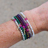 The Rayminder UV Awareness Bracelet in Garnet adds a pop of passion and the element of sun safety to your everyday bracelet stack.