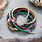 Wear our UV Awareness Rayminder Bracelet in Malachite and capture the blissful joy of a summer spent on Cape Cod. Malachite absorbs negative energy so all you need to focus on is sunshine and the sea breeze.