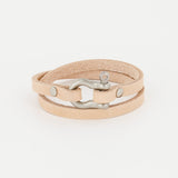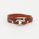 As the namesake to the Hide Tide Collection at Sailormade, the double wrap leather Shackle Bracelet beautifully marries motifs from land and sea.