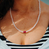 Wear our UV Awareness Rayminder Necklace in Rose Quartz when you’re in need of champagne and sunsets. Whether rekindling that old flame on an escape to paradise, or looking for summer love, Rose Quartz is bound to bring romance into your life.